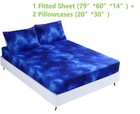 3pcs Blue Space Queen Fitted Sheet Set, Bed In A Bag Galaxy Fitted Queen Shee...
