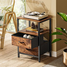 Vecelo Nightstand Metal Wood Drawers End Table Bedside Table Bedroom Storage