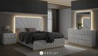 New 4pc Modern Italian Led Queen King Gloss White Gold Bedroom Set Bed/d/m/n