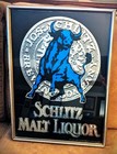 Vintage Schlitz Malt Liquor Beer Mirror Sign – Blue Bull Logo – 1970s Bar Mancav