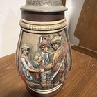 Vintage German Beer Stein Mug Tankard Relief Scene 8.5" Tall Pottery Drinkware