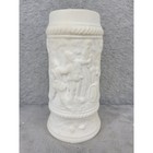 Vintage German Style Ceramic Beer Stein Mug Relief Figures White Collectible