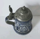 Antique Lidded Mug Pewter Lid German Beer Stein