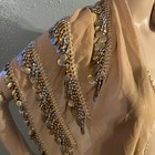 Vintage Women's Scarf Wrap Belly Dancing Beige Sheer With Silver & Gold Beading