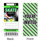 Boys Roller Skating Ticket Birthday Invitations Personalized 3x7" Vip Pass