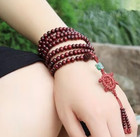 Stretch Wrap Mala Bracelet 108 6mm Buddha Bead Red Wood Prayer Buddhist Tassel