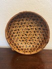 Vintage Flat Round Woven Cane Drying Basket Boho With Black And Auburn 20in