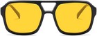 Oversized Trendy Men Women Aviator Sunglasses Black Frames Yellow Lens With Case
