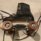 Vintage Black Leather Lace Up Roller Skates American Eagle Wooden Wheels
