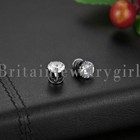 Women Men Silver Stainless Steel Round Black Cz Stud Earrings Screw Back Gift