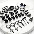 15 Pairs Earrings For Men, Black Stainless Steel Earrings Stud Kit For Men Wo...