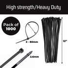 12-inch Black Zip Ties - 1000-pack Heavy Duty Wire And Cable Ties - Durable Self