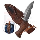 Damascus Fixed Blade Hunting Knife Hand Forged Wooden Hand Leather Sheath