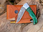 Handmade Damascus Steel Pocket Knife Greenwood Folding Knife For Camping Outdoor