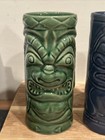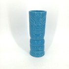 Vtg Hawaiian Tiki Mug Tumbler Ceramic Blue Glazed Barware Totem 6 3/4" Set Of 2