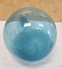 Unmarked Blown Crystal Light Blue Teal Optic Art Glass Round Bud Vase 9.5" Tall