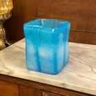 Vintage Aqua Blue Square Glass Vase Hand Blown Art
