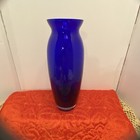 Large 10 3/4” Tall Cobalt Blue Glass Vase Vintage Decorative Euc