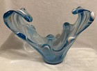 Vintage Mcm Blue Textured Art Glass Vase 8”