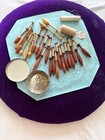 French Antique Lace Making Roller Pillow With 21 Wooden Bobbins