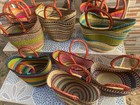 African Ghana Bolga Market Basket Purse Hand-woven Vibrant Color Leather Handle