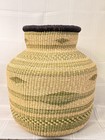 Ghana African Market Bolga Basket Hand Woven Natural Leather Handles