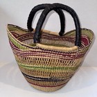 African Ghana Bolga Hand-woven Colorful Himarket Basket Purse Leather Handles