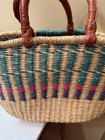 Bolga Ghana Woven Market Basket Leather Wrap Handle.