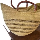 African Ghana Bolga Basket Hand Woven Leather Handle Market Basket