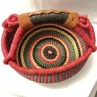 African Bolga Basket Handwoven Leather Handle Colorful Decor