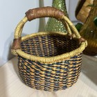 African Market Basket Ft Ghana Bolga Hand-woven 11" Leather Handle Earth Colors