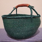 Artisan Bolga Basket Handwoven Market Basket Ghana Leather Handle