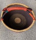 Bolga Market Basket Large Handwoven Ghana Africa Colorful Leather 13" Diameter