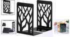 Tree Design Heavy Duty Black Metal Bookends Set Of 4, 7in Height