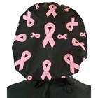 Breast Cancer Women's Bouffant Surgical Scrub Hat Cap Handmade Black Pink Ribbon