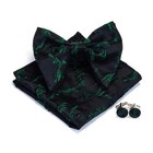 Floral Green Bow Ties For Men Pre-tied Big Silk Black Bow Tie And Pocket Squa...