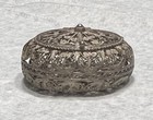 Antique French 800 Silver Pill / Trinket Box Filigree Jewelry Box Oval Floral