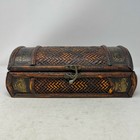 Vintage Wooden Trinket Box Decorative Ornate Metal Trim Hinged Lid Storage