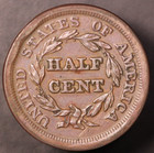 1851 Braided Hair Half Cent Uncirculated Unc Coin, Cheek Scratch #29776