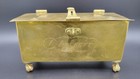 Antique English Brass Tobacco Box, Eagle Paw Feet, Horse Riding Engraving