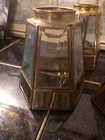 Pair Brass Vintage Hexagonal Glass Metal Lamp Shades