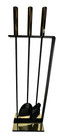 Set Of Mid Century Modern Brass & Cast Iron Fireplace Tools With Stand, Polished