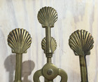 Vintage Brass Iron Fireplace Tool Set Sea Shell Clam Shell Design 4 Piece