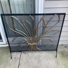 Rare Vintage Fireplace Black Iron Fire Place Screen Brass Wheat Motif 35”