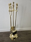 Vintage Brass Iron Fireplace Tool Set With 31" Stand Ball Handles - New!