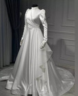 Muslim Wedding Dresses High Neck Floral Arabic Long Sleeve Sequin Bridal Gowns
