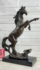 Rearing Horse Bronco Stallion Bronze Statue Sculpture Figure Marble Base 12" X 9