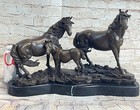 Handmade Bronze Sculpture Statue Decor Trio Of Horses Foals Equine Art Pj Mene