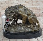 Western Art Charles Russell Black Bear Mother Cub Bronze Marble Statue Sculpture