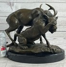 Lion Hunting Gazelle Bronze Metal Statue Sculpture Hunter Prey Decor Pj Mene